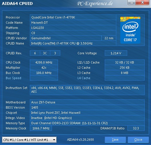 Als Basis dient unser aktuelles ASUS Z87-Deluxe Haswell Mainboard mit dem ebenso aktuellen BIOS 1405. Da Intel für seine Core i7 und Core i5 Prozessoren vor geraumer Zeit den alten Frontsidebus Flaschenhals beseitigt hat, in dem der Speichercontroller ähnlich wie bei AMD in die CPU wanderte, haben sich die Zusammenhänge grundlegend geändert und Intel macht es den Übertaktern wirklich nicht leicht, etwas mehr aus den Systemen herauszuholen. Zunächst einmal haben wir natürlich immer noch einen Bus, auch wenn er nicht mehr Frontsidebus tituliert wird, sondern QPI (Quick Path Interconnect), der direkten Kommunikationsschnittstelle zwischen CPU und Northbridge respektive Chipsatz. Diese Punkt-zu-Punkt Verbindung zeichnet sich durch grössere Bandbreite, geringere Latenzzeit und die Tatsache, dass weniger Leitungen nötig sind, aus. Kurzum, die Materie stellt sich für Neulinge als relativ komplex dar, zumal es noch einige andere Faktoren dabei zu berücksichtigen gilt. Kurz zusammengefaßt eine kleine Übersicht der wichtigsten "Stellschrauben":