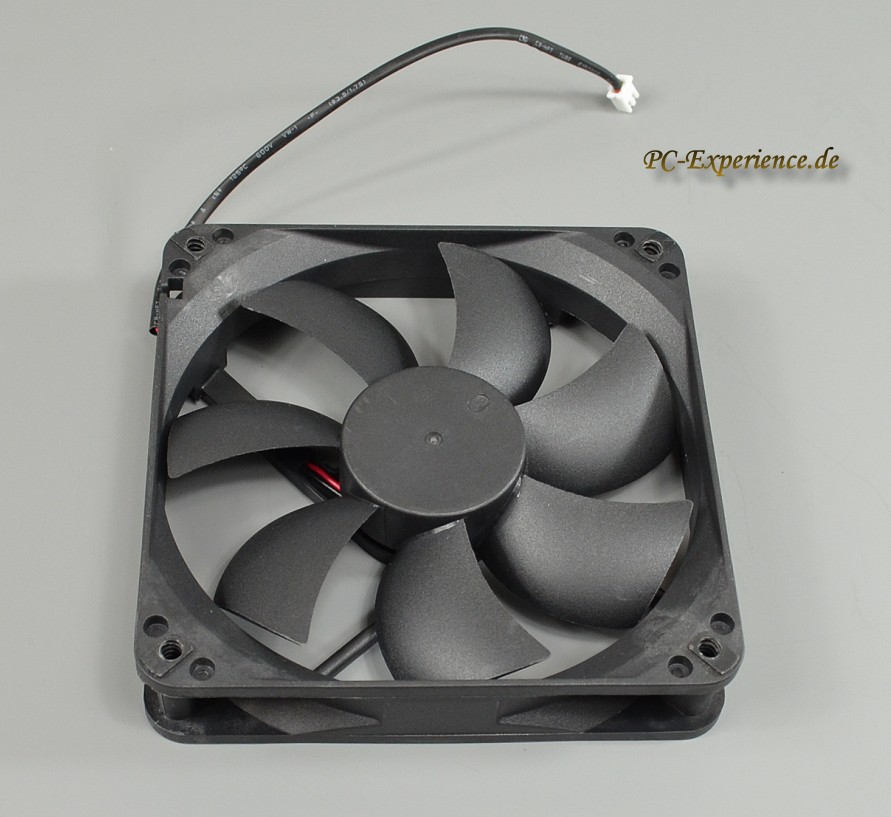Für den Lüfter steht eine Maximaldrehzahl von 2300 U/min zu Buche, die allerdings eher theoretischer Natur ist, denn im realen Einsatz innerhalb des Cooler Master Netzteils wird mit niedrigeren Drehzahlen gearbeitet. Die lastabhängige Steuerung des Lüfters arbeitet mit klar definierten Kennlinien, so dass der Lüfter bis ca. 50% Last mit einer fest vorgebenen Drehzahl läuft (625 U/min bei 3,2 Volt Ansteuerung). Erst dann wird die Drehzahl kontinuierlich erhöht, bis der Lüfter dann bei 80% Last mit 1320 U/min rotiert und bei 100% Last sein Maximum erreicht (1866 U/min bei 9,4 Volt Ansteuerung), was dann allerdings alles andere als leise ist, wie sich vermutlich jeder vorstellen kann.