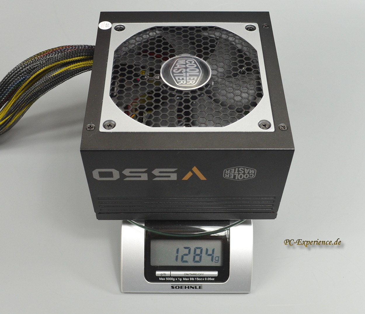 Gitterförmige Aussparungen an der Frontpartie minimieren wie üblich den Luftwiderstand der abzutransportierenden Abwärme aus dem Netzteil, was die Wirkung des Lüfters tatkräftig unterstützen soll und wovon auch das Cooler Master Netzteil maßgeblich profitiert. Mit 1284 Gramm Gewicht ohne die kompletten Kabelstränge liegen wir in einem Bereich, der kein PC-Gehäuse vor allzu große Anforderungen stellen sollte, zumal die Netzteile aktuell ohnehin fast alle im Bodenbereich der Gehäuse verschraubt werden und dort biegen sich relativ selten die Bleche durch. Der Netzteil Korpus ist an den Seiten und auch hinten hermetisch geschlossen ausgeführt, und das macht Sinn, denn durch eventuelle Öffnungen kann im schlechtesten Fall zusätzlich noch warme Abluft aus dem Rechnerinneren eindringen.