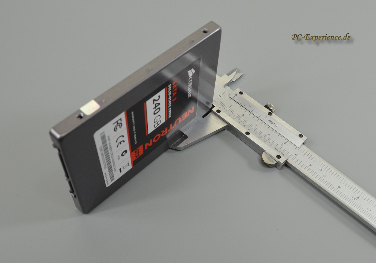 Das nur 7 mm dünne Aluminium Gehäuse der Neutron GTX hinterlässt einen zufriedenen Betrachter, die Verarbeitung bewegt sich auf höchstem Niveau. Die Dicke des Gehäuses spielt eine wesentliche Rolle bei der eventuellen Aufrüstung von Notebooks, nicht alle Notebooks oder Netbooks sind in der Lage, die standardisierten 2,5" SSDs mit 9mm dicken Gehäusen aufzunehmen. Es existieren einige Geräte beispielsweise von HP, Lenovo oder Dell, die lediglich 2,5" Schächte besitzen, in denen nicht mehr als 7 mm Platz ist. Also informiert euch bitte vorher, welche SSDs für eure Notebooks einbaubar wären, es existieren durchaus flachere Alternativen von Intel oder auch Samsung, die Neutron SSDs verfügen wie erwähnt über ein 7 mm Gehäuse, so dass es keinerlei Einbauprobleme geben sollte.