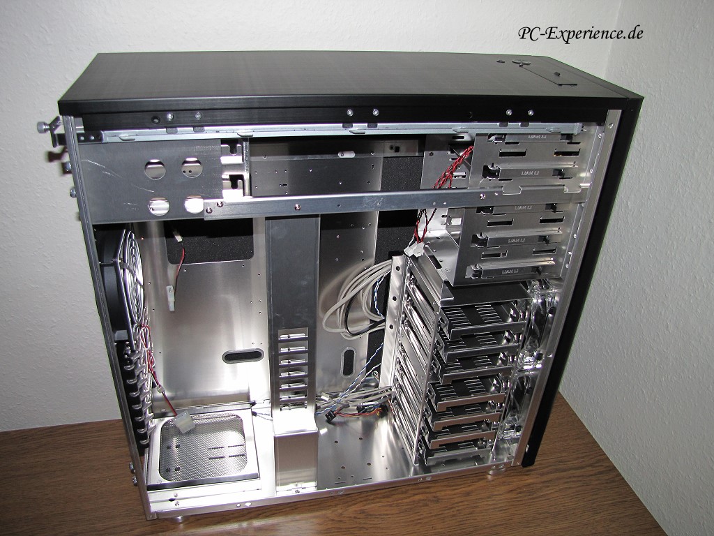 Wenn es überhaupt etwas zu kritisieren gäbe, dann die Tatsache, das Lian Li seine Lüftersteuerung abermals hinter der Frontverkleidung versteckt und es nicht schafft, die Lüfter zu entkoppeln. In unserem Fall spielt das keine Rolle, weil wir ohnehin andere Lüfter und eine separate Lüftersteuerung verwenden (Zalman ZM-MFC1 Plus) werden, aber für den Kunden wären diese Aspekte mit weiteren Kosten verbunden und das ist angesichts des Gehäuse-Preises schon ärgerlich.