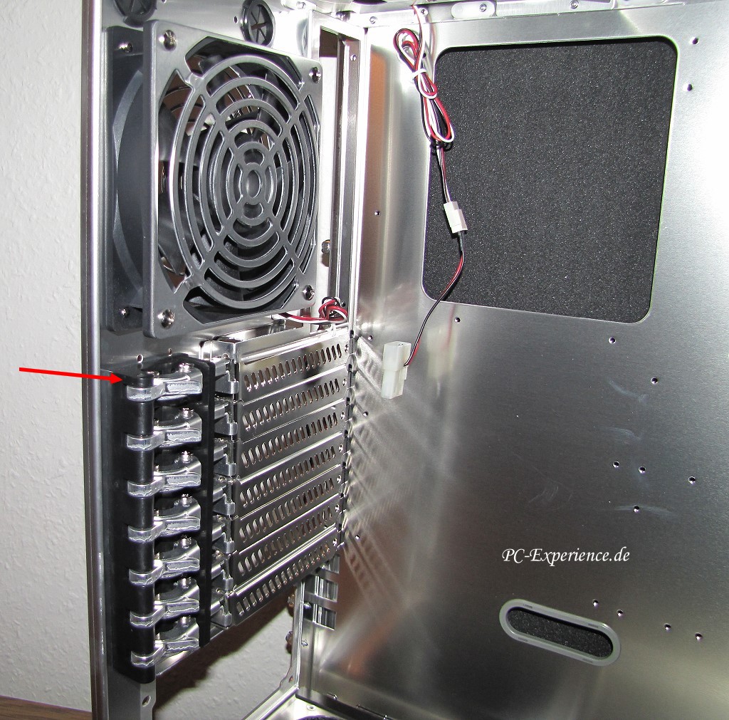 Die Belüftungsschlitze der PCI-Slot Abdeckungen fließen so langsam ebenfalls in alle neuen Lian Li Gehäuse ein. Zwingend nötig ist dies nicht, zumal die Be-und Entlüftung des Gehäuses über die Lüfter und das Netzteil mehr als ausreicht, Nachteile erbringen diese Schlitze allerdings auch keine.