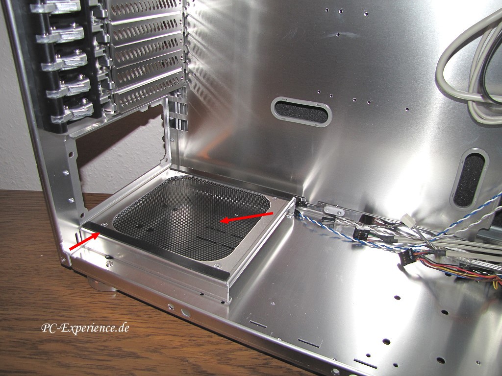 Die untere Netzteilaufname verfügt über die gewohnten Entkoppelungsstreifen und einen Staubfilter, der allerdings nur richtig gereinigt werden kann, wenn das Netzteil entfernt wird, da wäre eine Herausziehoption für den Filter eindeutig praktischer.