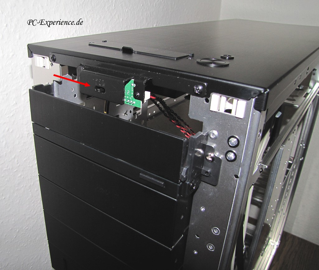 Einen wichtigen Schalter wollen wir keinesfalls unterschlagen, den dreistufigen Schalter für die Lüftersteuerung. Leider wurde er so integriert, das die Frontverkleidung entfernt werden muß, um ihn zu nutzen, das kann man nun wirklich sinnvoller lösen.