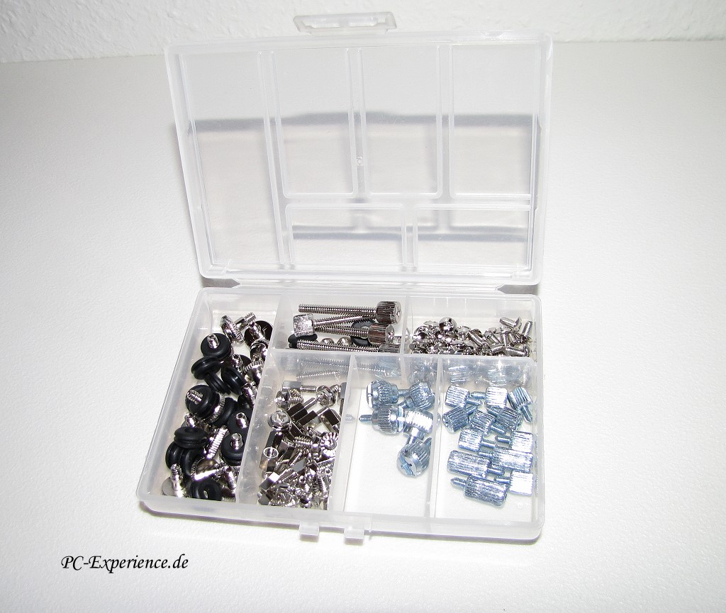 Die kleine Schraubenbox sollte man übrigens nicht zu weit wegstellen, als Reservoir für den Inhalt der vielen kleinen Lian Li SchraubenTütchen ist sie ideal und wird gerne genommen. Das B in der Namensgebung steht für die Gehäusefarbe, also schwarz (black), dementsprechend wäre die silberne Variante (PC-B70A) mit einem A gekennzeichnet (Argentum=silber), wenn es denn noch eine geben sollte, im moment sieht es aber eher nicht danach aus.