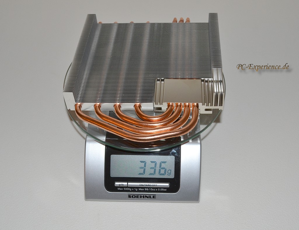 Um noch einmal auf die sehr kleine Kühlfläche von 30x30mm zurückzukommen, diese erscheint fast schon unterdimensioniert, angesichts einiger Nvidia GPU-Heatspreader, die durchaus 47x47mm und mehr betragen können. Aber diesbezüglich besteht kein Grund zur Sorge, in der Praxis wirkte sich dies nicht negativ aus und davon abgesehen konnte Scythe auf diesem Weg die Kompatibilität erhöhen, denn so bleibt mehr Platz für entsprechende Haltebügel. Das Gewicht des Setsugen 2 ohne den Lüfter liegt bei 336 Gramm, das bedeutet im Vergleich zur Konkurrenz (Shaman: 515 Gramm, MK-13: 522 Gramm) schon eine deutliche Entlastung des Grafikkarten-PCBs.