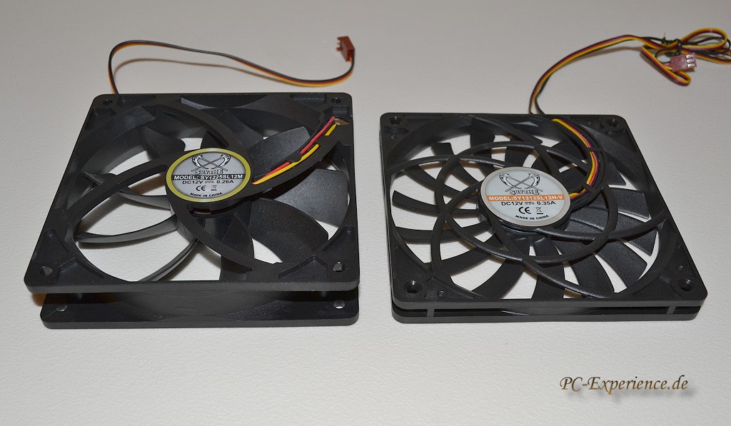 Wir haben vor dem Test für unsere Referenz-Lüfter für uns selbst eine ganz klare Maxime erstellt, es sollten keine Brüllwürfel oder Volumenmonster verwendet werden, die im Betrieb einen Kopfhörer zwingend voraussetzen. Die Lüfter sollten eine ausgewogene Mischung aus möglichst geringer Lautheit, hoher Laufkultur (Lagerqualität), guter Scalierbarkeit (Spannbreite der möglichen Voltansteuerungen) und trotzdem noch annehmbarem Förder-Volumen mitbringen. Alle diese Attribute vereinen die Noiseblocker Multiframe M12 und Noiseblocker Blacksilent Pro PK2 in sich, darum stellen sie zur Zeit für jedes Gehäuse das absolute I-Tüpfelchen dar.