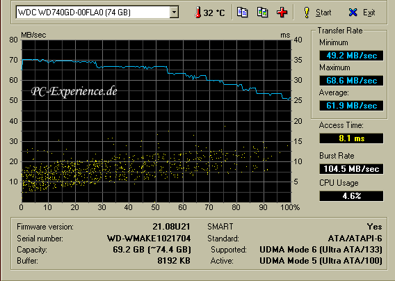 Und ich kenne keine SATA-Platte auf dem Markt, die bei 7200U/min auch nur annähernd die UDMA-6 Bandbreite von 133MB/s ausreizen könnte.