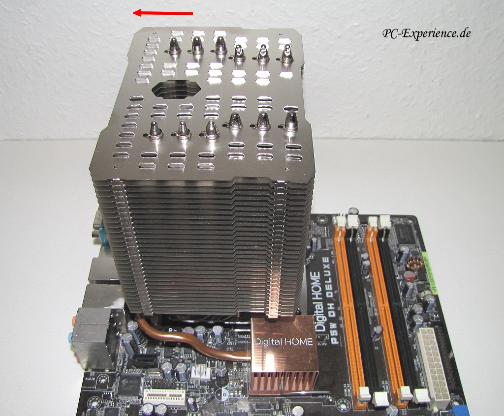 • pfiffige Heatpipe Ausrichtung bewirkt viel Platz um den Sockel herum