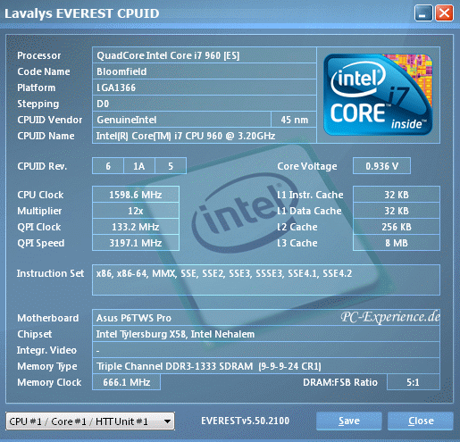 • SPD Speichertimings: 9-9-9-24 bei 1,50 Volt