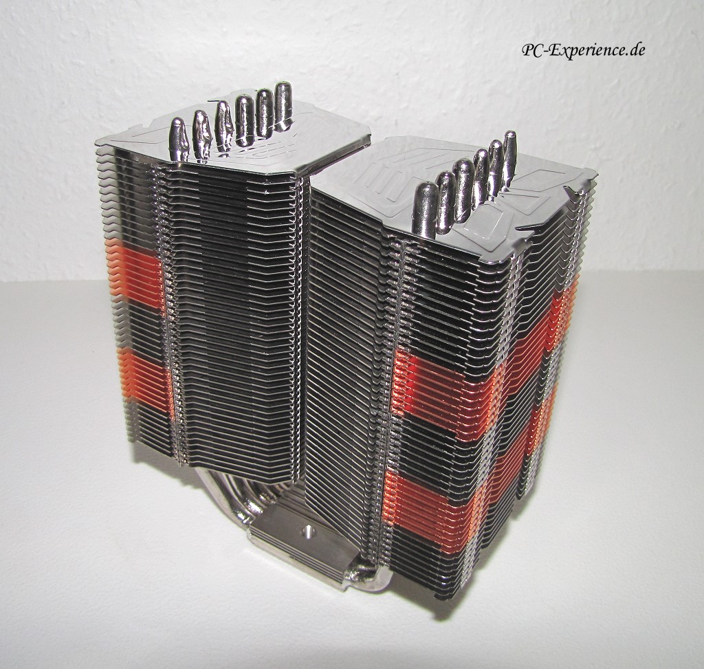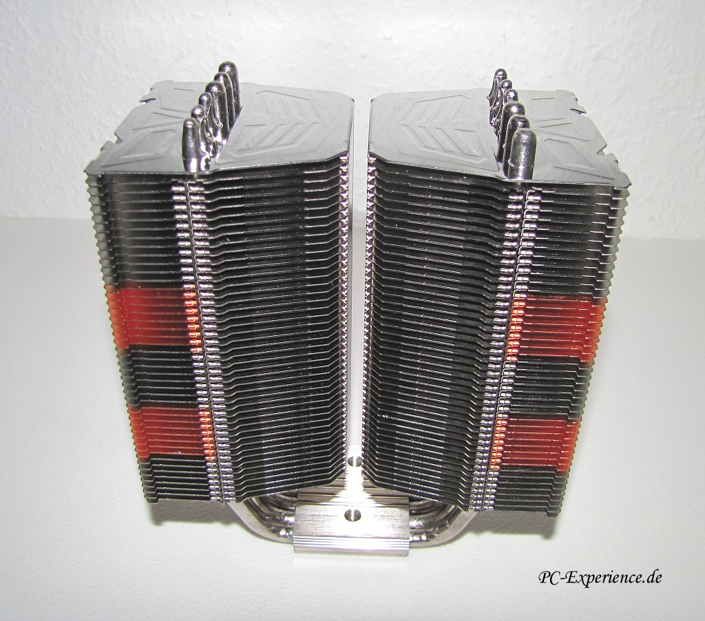 Was wäre an dem Kühler noch zu optimieren? ein komplett aus Kupfer angefertigter Super Mega würde sicherlich noch ein paar Prozentpunkte mehr Kühlleistung herausarbeiten, der Gewicht würde dann aber sehr schnell die 2Kg Marke erreichen. Die Heatpipes könnten für den Luftstrom besser ausgerichtet werden, so wie Prolimatech es beim Armageddon ja schon praktiziert hatte.