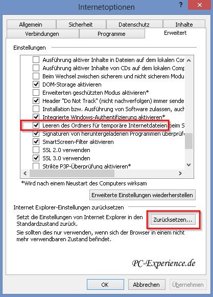 Hier könnt ihr auch den Internet Explorer zurücksetzen falls ihr entweder mit den vorgenommenen Einstellungen nicht zufrieden seid, oder wenn der IE aus dem Ruder läuft.