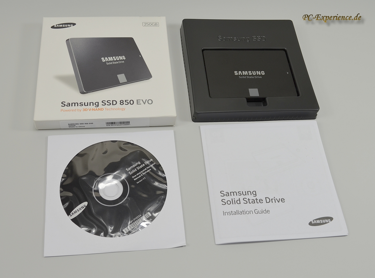 Unsere Samsung SSD haben wir über Dritte in einem Onlineshop unserer Wahl gekauft, um den berüchtigten golden Samples gezielt aus dem Weg zu gehen. Das Ausstattungspaket erscheint auf den ersten Blick sehr spartanisch, da kein Einbaurahmen enthalten ist. Unterschiedliche Kits scheint es auch nicht mehr zu geben, früher legte Samsung in sogenannte Upgrade Kits zumindest die notwendigen SATA-Datenkabel und Einbaurahmen bei. Das alles fehlt, außer dem Samsung Magician Tool und der Samsung Klon Software befindet sich neben zweier Case-Badgets nichts weiter in der etwas unscheinbaren Schachtel. Das Faltblatt für den Einbau der SSD wurde zwar hübsch bebildert, viel mehr als ein paar Einbau-Prinzipien sind aber nicht erkennbar, insofern entfällt es fast schon in die Kategorie überflüssig, Anfänger werden damit nicht sehr weit kommen. Tatsache ist jedenfalls, dass der Kunde so mit seiner SSD ziemlich allein gelassen wird, nicht jeder wacht morgens auf und weiß alles über SSDs und deren Handhabung. Die Samsung SSD Produktseite hält zu diesem Thema außer Marketing leider auch nicht viel mehr parat und der Support Bereich ist sehr unübersichtlich angelegt, das kann die Konkurrenz teilweise erheblich besser. Ein Blick auf die beigelegte CD relativiert diesen Mangel zumindest teilweise, dort sind Anleitungen für das Samsung Magician Tool und die Migrations Software auch auf deutsch verfügbar. Wohl dem, der ein optisches Laufwerk zum Auslesen hat, für Notebook/Netbook Besitzer ohne optisches Laufwerk wird das Lesen der deutschen Anleitungen sicherlich etwas schwierig. Insofern sollte Samsung dringend auch online für entsprechende Übersetzungen sorgen.