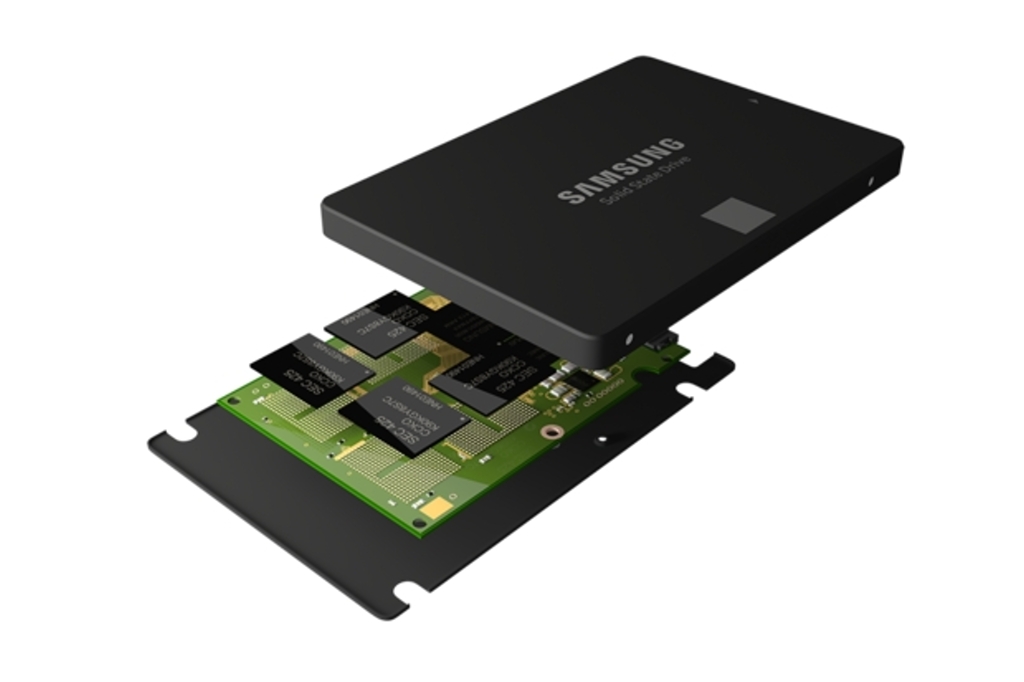 Als zentrale Schaltstelle arbeitet der 400 MHz schnelle SATA-3-Controller Samsung MGX, der auf dem ARM Cortex R4 mit zwei Rechenkernen basiert. Das ist neu, denn die 840 EVO wurde diesbezüglich von einem Samsung MEX (3-Core, 8-Kanal, synchron, 400 MHZ) angesprochen. Dieser Controller existiert auch noch, wird für die neue 850 EVO aber erst ab einer Kapazität von 1 TB eingesetzt. Das entscheidend Neue ist wie schon für die 850 Pro die aus dem Enterprise Segment adaptierte 3D V-NANDTechnik. Deren Flash-Chips verfügen jetzt über 32 statt 24 Funktionslagen und über ein wenig mehr Speicherkapazität. Statt auf planare Architektur (2D) setzen die NAND-Flash-Speicherhersteller von Samsung auf dreidimensionale Strukturen, um höhere Speicherkapazitäten pro Chip zu erreichen. Das spart Siliziumfläche, so dass einzelne Zellen wieder größer ausfallen können und dürfen. Jeder Chip bietet eine Speicherkapazität von 128 gigabit. Bei Samsungs V-NAND Chip-Struktur ist jede Zelle mit Charge Trap Flash (CFT) Technologie elektrisch mit einer nicht-leitenden Schicht verbunden. Jedes Zellenarray ist vertikal auf das nächste Array gestapelt, um Chips mit mehreren Milliarden Zellen zu erhalten. Der Einsatz von 3 bit-per-cell, 32 Layer, vertikal gestapelter Zellenarrays erhöht die Effizienz der Speicherproduktion enorm. Gegenüber Samsungs 10 nanometer (nm) Class* 3bit planar NAND-Flash ermöglicht das neue 3D V-NAND mehr als die doppelte Wafer-Produktivität, ein weiteres Argument für die angestrebte Massenproduktion.
