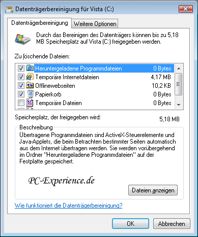 Das Vista einiges an Festplattenplatz verschlingt, ist keine Neuigkeit, aber es existieren Bordmittel, um dieses wirkungsvoll zu bereinigen, insbesondere wenn Vista fertig konfiguriert ist und alle eure Programme installiert sind.