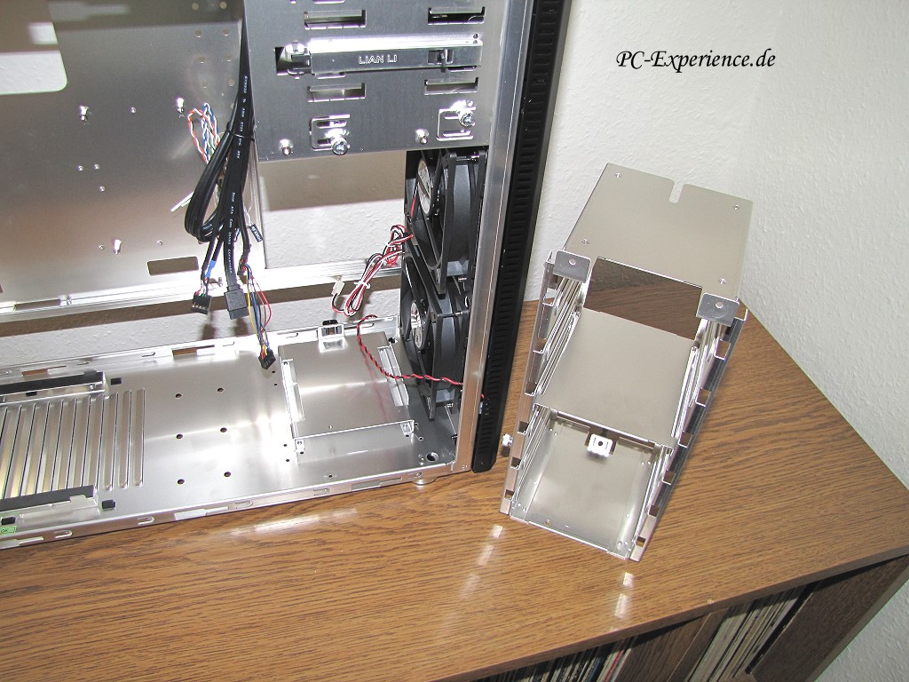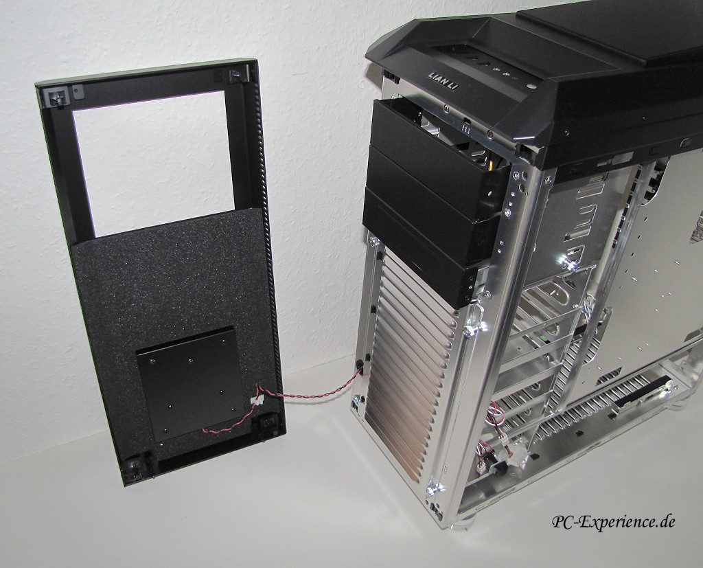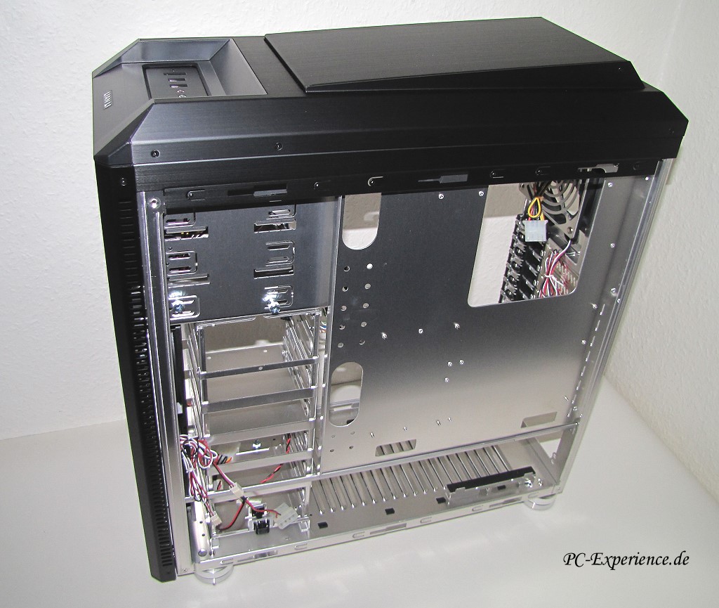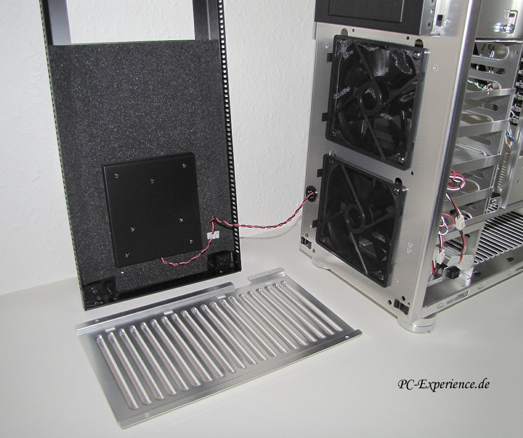 Der Deckel ist komplett entfernbar, das ist sicherlich nicht die schlechteste Nachricht für diejenigen, die einen Radiator für eine Wasserkühlung einbauen wollen. Unter dem Deckel verbirgt sich übrigens eine weitere dreistufige Lüftersteuerung, so daß man den hinteren und vorderen Bereich des Gehäuses getrennt regeln könnte.