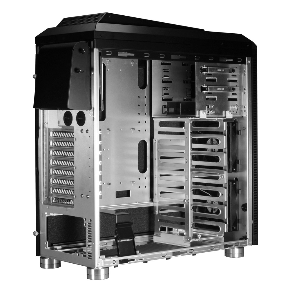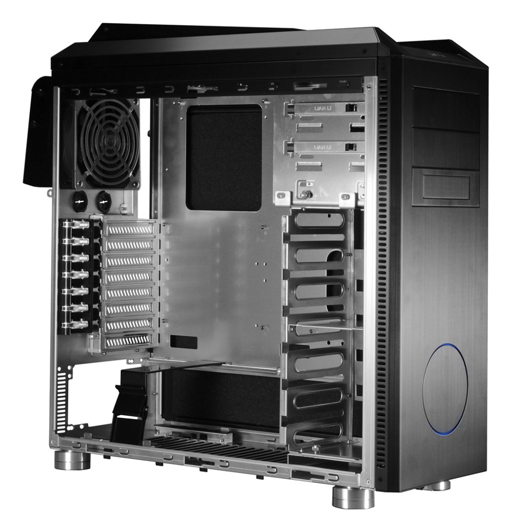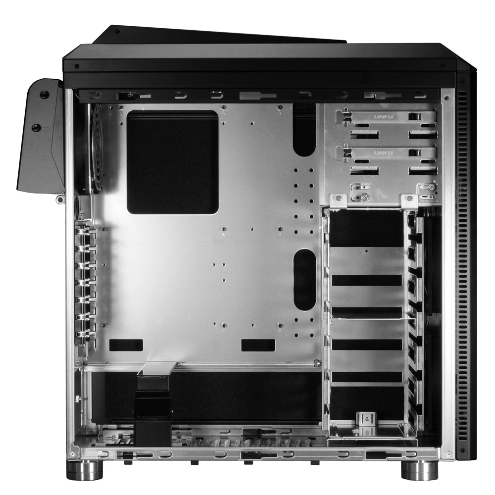 Der Deckel ist komplett entfernbar, das ist sicherlich nicht die schlechteste Nachricht für diejenigen, die einen Radiator für eine Wasserkühlung einbauen wollen. Unter dem Deckel verbirgt sich übrigens eine weitere dreistufige Lüftersteuerung, so daß man den hinteren und vorderen Bereich des Gehäuses getrennt regeln könnte.
