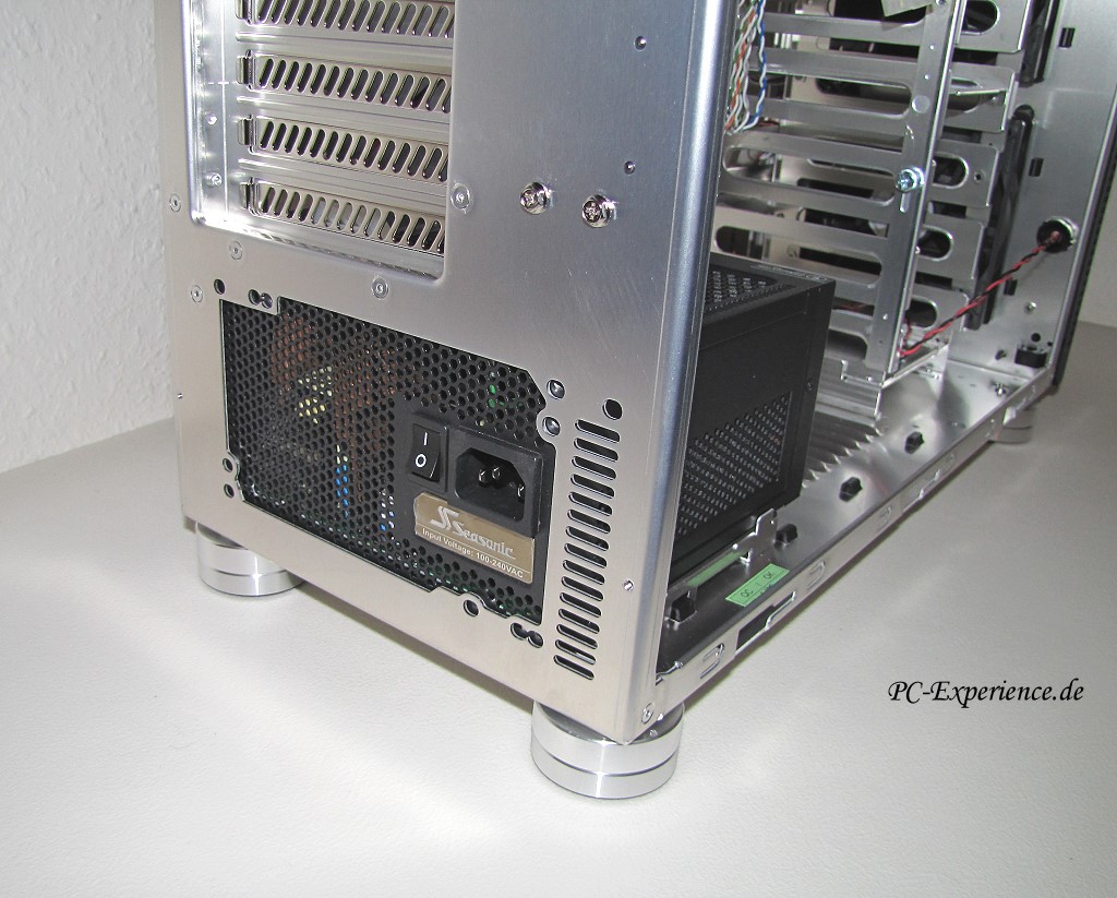 Auf den Netzteileinbau gehen wir im Kapitel Komplettierung noch detalliert ein, denn diesbezüglich sollte man schon einige wichtige Aspekte beachten. Grundsätzlich sind jedenfalls gummierte Aufnahmen vorhanden, die einen gewissen Entkoppelungseffekt erarbeiten. Der Netzteilsockel ist übrigens exakt 13mm hoch und 12mm breit, das für all diejenigen, die den dortigen Luft-Ein-und Ausgang eventuell verschließen möchten, oder anderweitiges Modding planen.